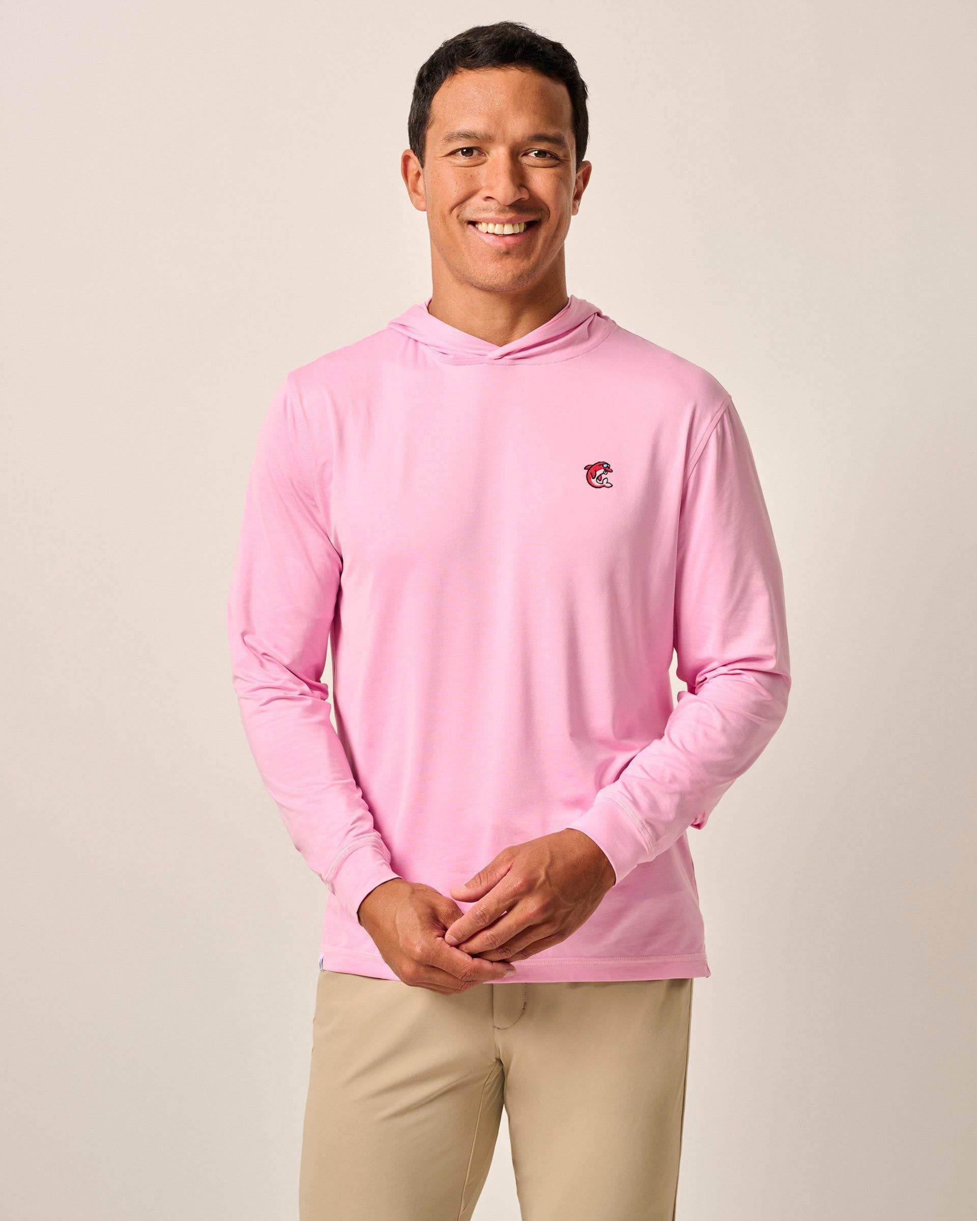 As part of our 20th anniversary, we partnered with SWAG Golf—one of the coolest brands in the golf game—to make this exclusive collection. This Talon Performance Hoodie zooms out a bit further from the beach and brings in a dolphin for good measure.